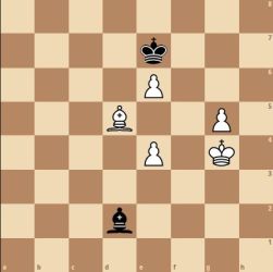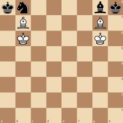 Si Patrick a deux pièces, il gagne aussi. Mater avec deux fous, c'est facile, c'est plus difficile avec un fou et un cavalier, mais c'est possible, même avec la meilleure résistance de Gabriel. Rappelons que le fait de pouvoir forcer le mat n'a ici aucune importance. Ce qui compte, c'est de pouvoir mater techniquement, même avec le concours de son adversaire.
