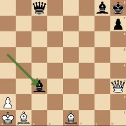 Il y a une dernière situation où la chute du drapeau amène à une nulle par mat impossible, c'est quand il existe une suite de coups forcés qui amènent au mat de la part de celui dont le drapeau vient de tomber. Par exemple, dans cette situation où les Noirs viennent de jouer 1... Fc3+, si le drapeau des Blancs tombe, c'est nulle car les 2 seules suites possibles (2 Dxc3+ Dxc3+ 3 Fxc3≠ et 2 Fxc3+ Dxc3+ 3 Dxc3≠ ) mènent à une victoire des Blancs, le Noirs ne peuvent donc pas gagner au temps.